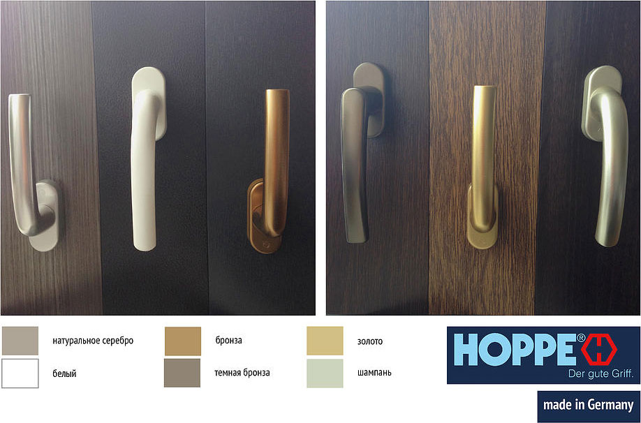 Разнообразие цветовой гаммы позволяет выбрать наиболее подходящую ручку для определенного окна. Белый, бронзовый, золотистый, хромированный и другие оттенки помогут придать оконной конструкции уникальный, эксклюзивный вид.