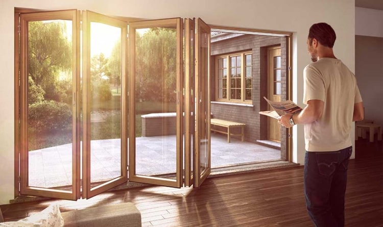 Девизом для данного типа открывания можно сделать следующее: объединяем пространство! Применение складных дверей типа «гармошка» позволяет соединить в единое целое гостиную и террасу, летнюю кухню с лужайкой возле дома, расширить пространство ресторана или кафе в летний период так, чтобы посетители, находящиеся вне основного помещения, не чувствовали себя одиноко.
