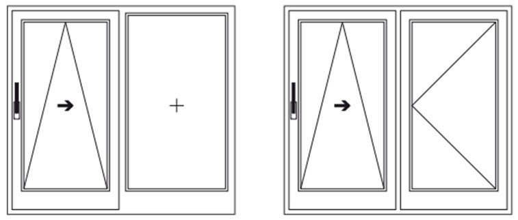 A - оконный проем разделен на 2 части и створка сдвигается на глухой элемент окна